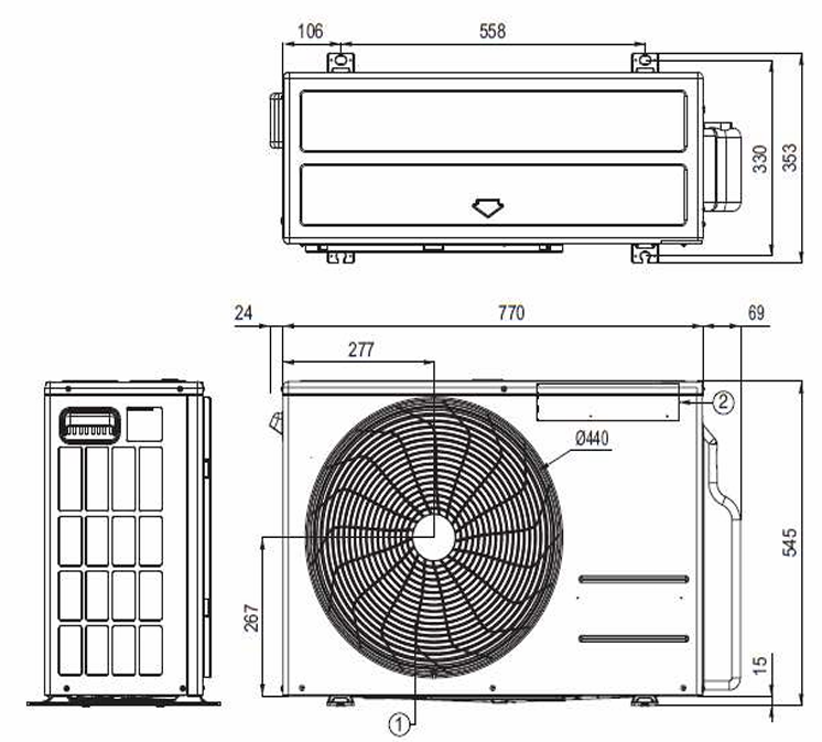 - Rozměry vnitřní jednotky 652/158/652 mm