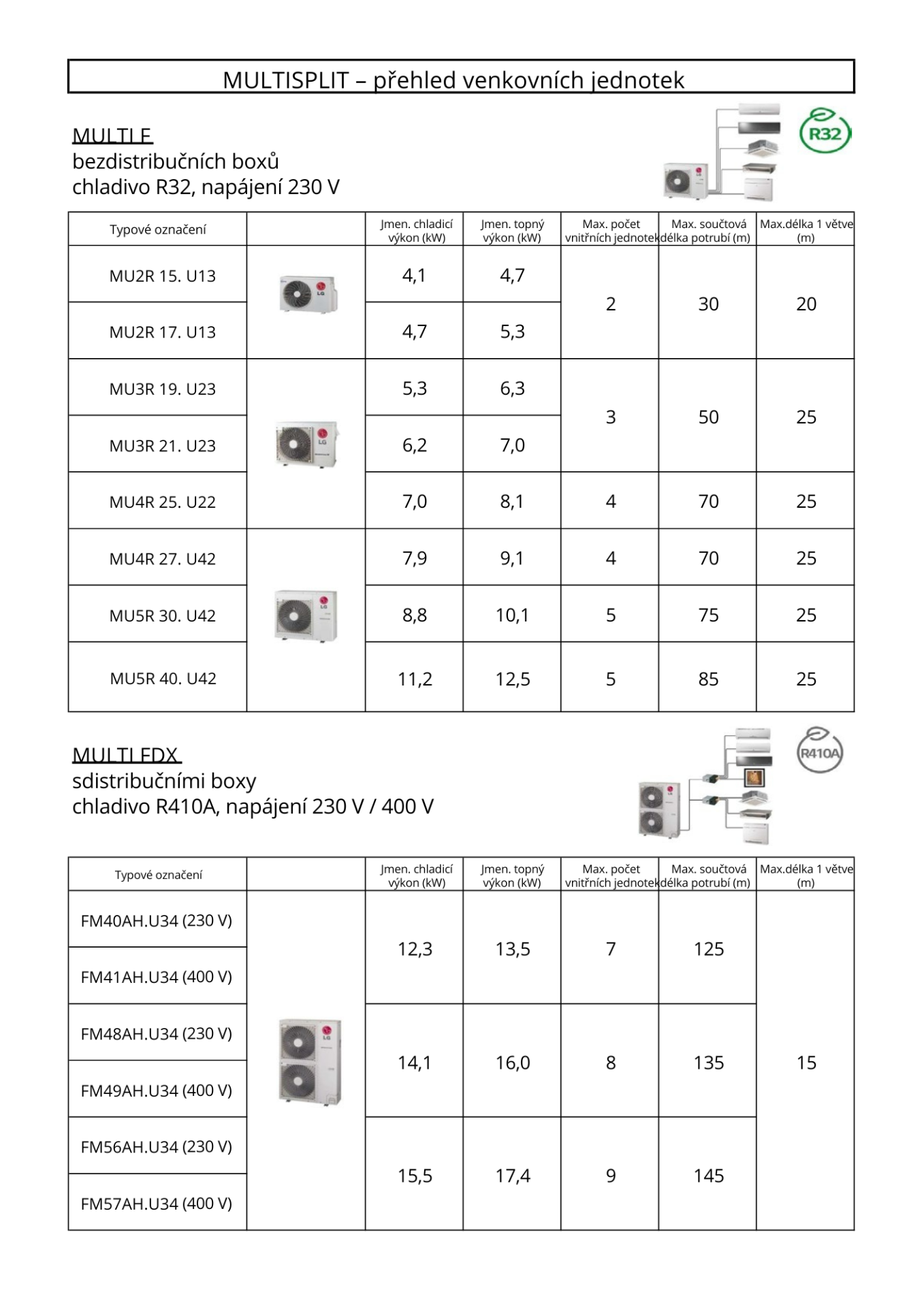 MULTISPLIT Venkovní jednotky R410 MULTI FDX - s distribučními boxy
